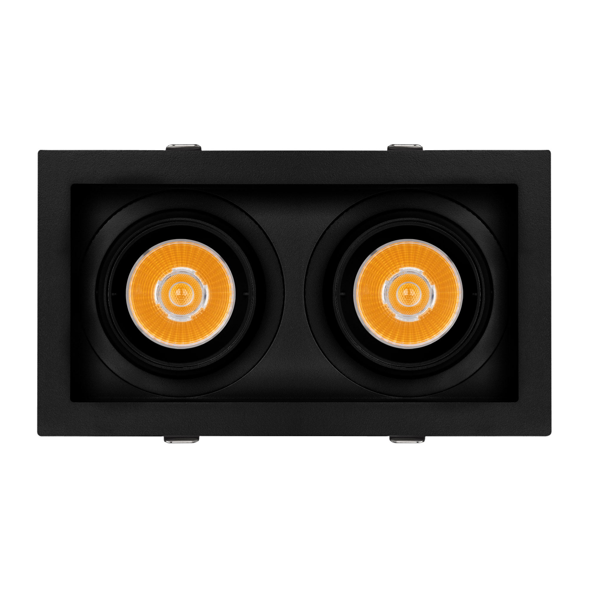 Поставка под заказ от 30 шт. Встраиваемый карданный светильник. Мощность 2х20 Вт, св. поток 4134 лм, 103 лм/Вт, дневной 4000 K, CRI>92, угол 20°, напряжение питания 230 В. Чёрный корпус из алюминия, белая вставка, степень защиты IP20. Размер: длина 210 мм, ширина 117 мм, высота 105 мм. Монтаж встраиваемый, установочное отверстие: длина 190 мм, ширина 95 мм. Драйвер 24-42 В, 500 мА, пульсация <2%.