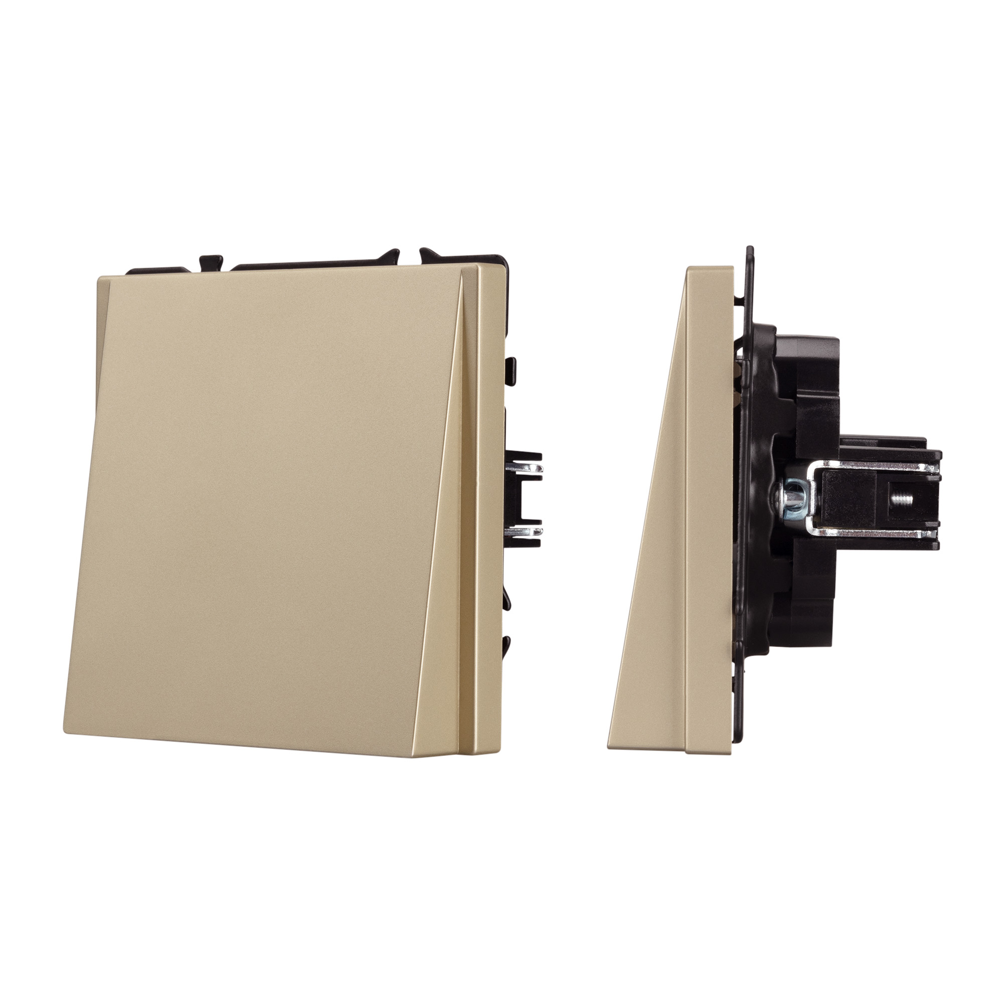 Строгие геометрические линии гармонично сочетаются с функциональностью продуманных механизмов, создавая идеальное решение для дизайн-проектов, где важны как эстетика, так и практичность. Механизм вывода кабеля совместим с рамками серии NOBE, создает утонченный минималистичный вид. Скрытый тип монтажа позволяет гармонично встроить в интерьер любого современного дизайн-проекта. Видимая часть механизма выполнена из высококачественного пластика цвета золотой песок и имеет Soft-Touch покрытие, что придает изделию приятные тактильные ощущения и стильный внешний вид. Выводной кабель фиксируется винтовым зажимом, расположенным на тыльной стороне механизма. А усиленные распорные лапки двойного захвата надежно фиксируют механизм в установочном подрозетнике круглого сечения диаметром 60мм. Суппорт окрашен в черный матовый цвет под основу механизма и выполнен из металла толщиной 1,5мм, что обеспечивает безопасность и уверенность в установке. На каждой стороне суппорта размещены фиксирующие элементы, позволяющие комбинировать механизмы в системы до 5шт как горизонтально, так и вертикально.