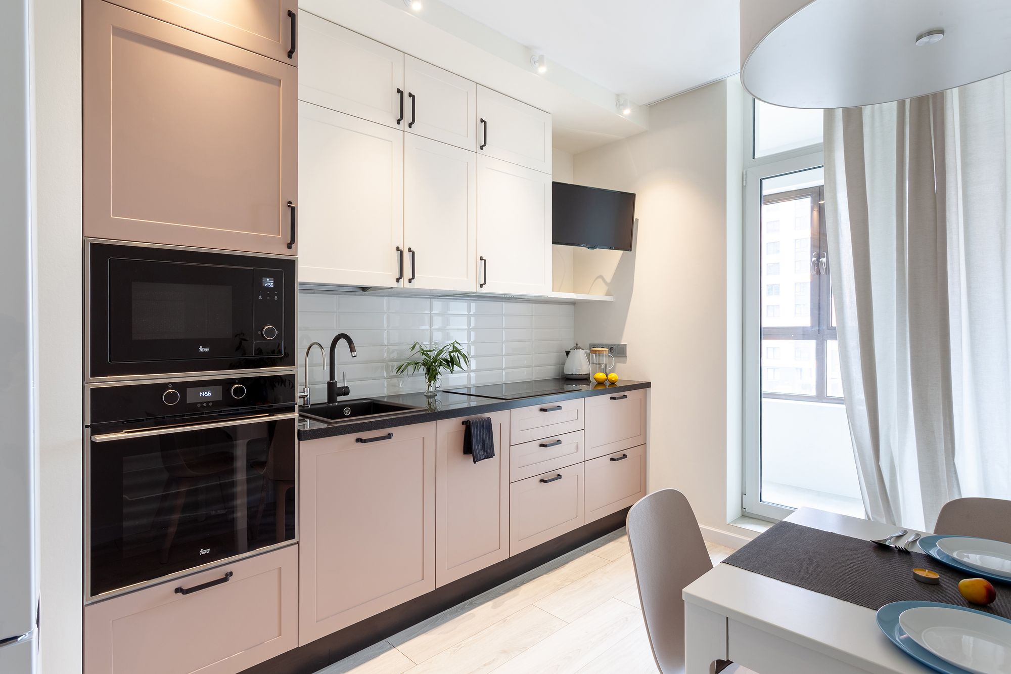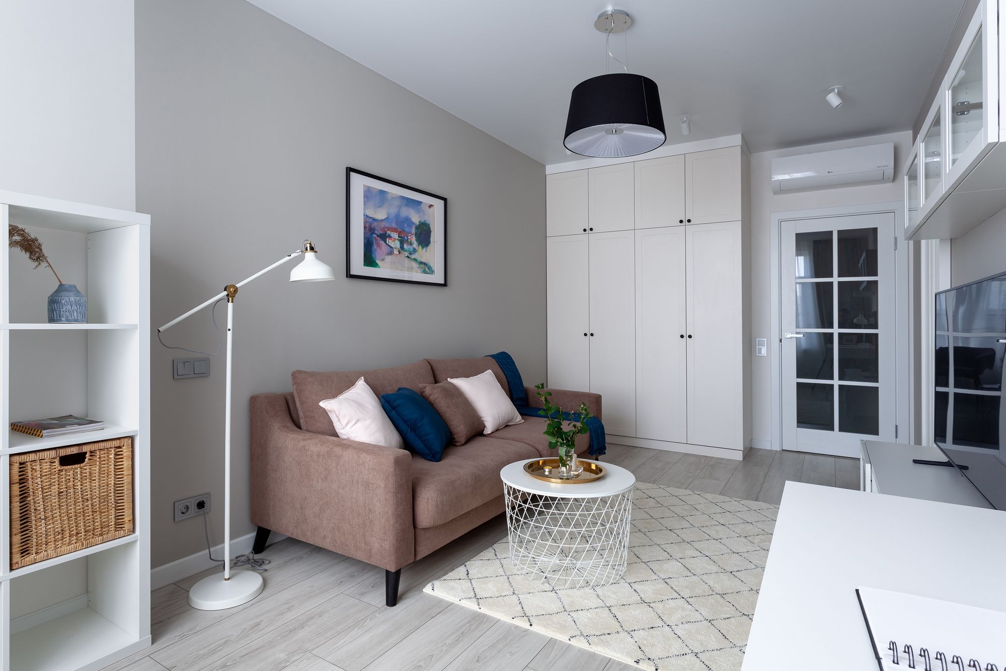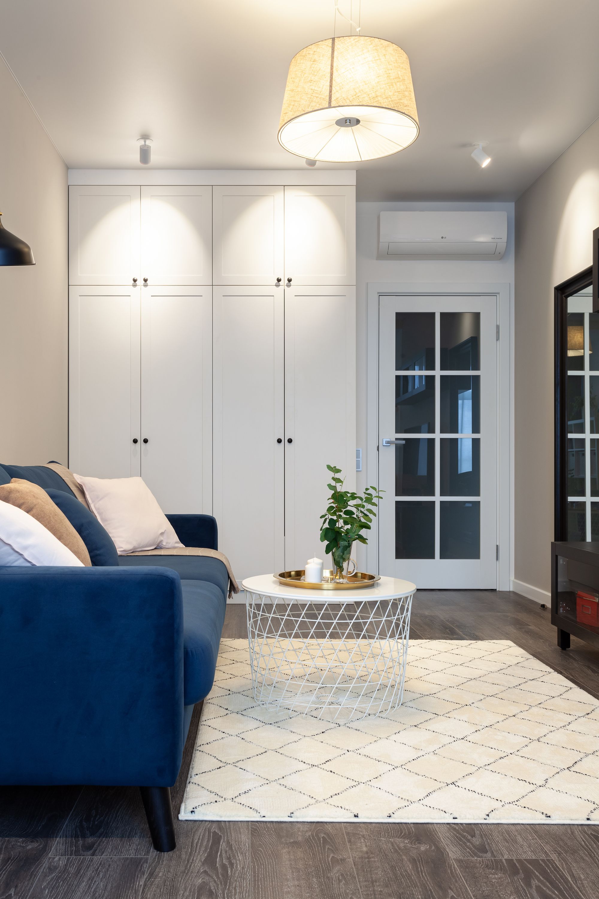 Две одинаковые по планировке квартиры, в которых применили разные цветовые решения и одинаковое освещение. Создание приятной и комфортной световой атмосферы доверили двум типам поворотных светильников. Встраиваемые светильники с узким углом излучения помогают создать акцентное освещение, направить свет на детали интерьера и выделить определенные зоны в квартире. Белый алюминиевый корпус светильников выполнен в современном лаконичном стиле и гармонично вписываются в интерьер. В каждой квартире одинаковые светильники с приятным теплым свечением и разной функциональностью: для декоративной подсветки или основного освещения.