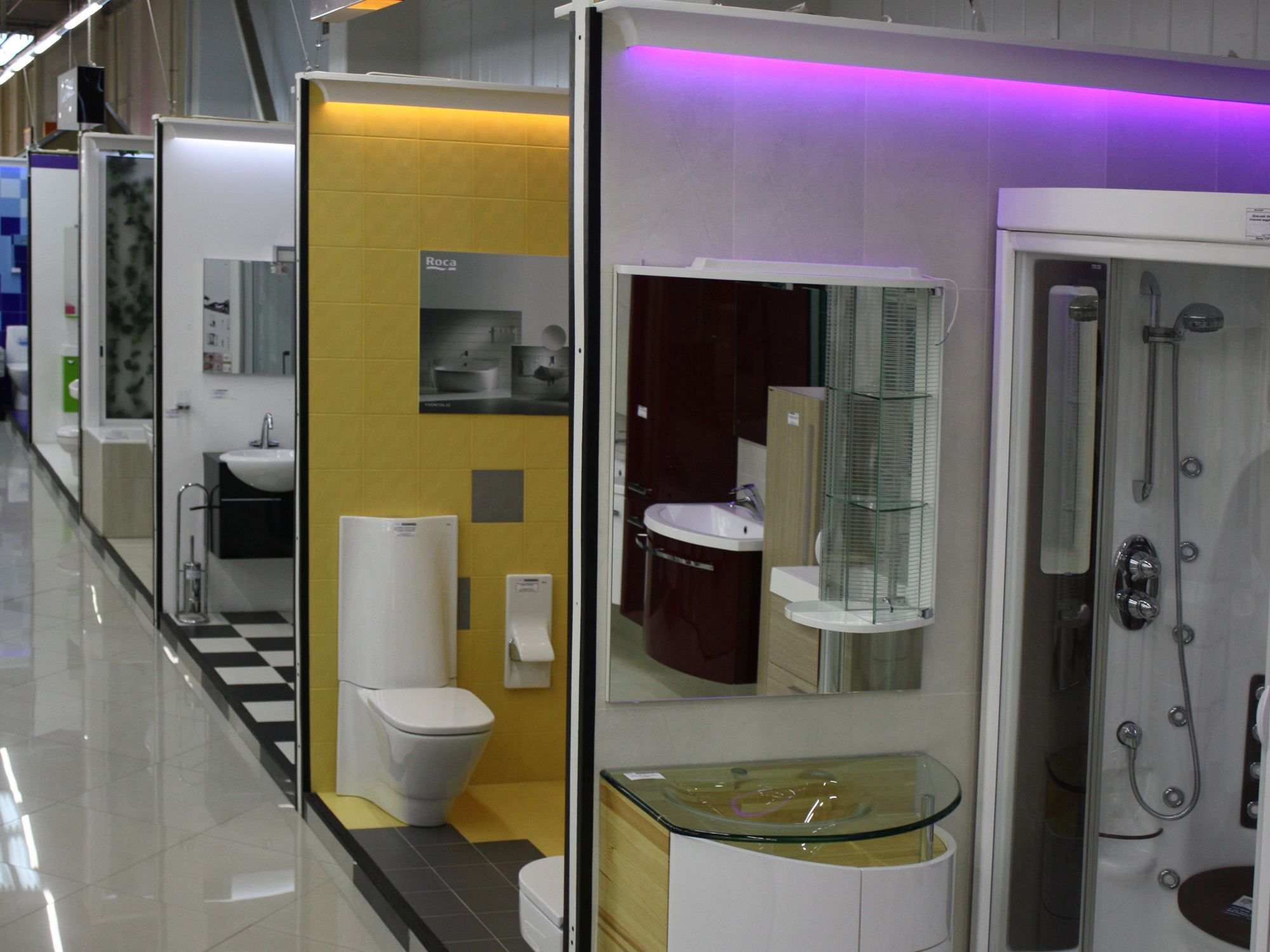 В проекте реализована светодиодная подсветка демонстрационных стендов в магазине сантехники и товаров для ванных комнат.